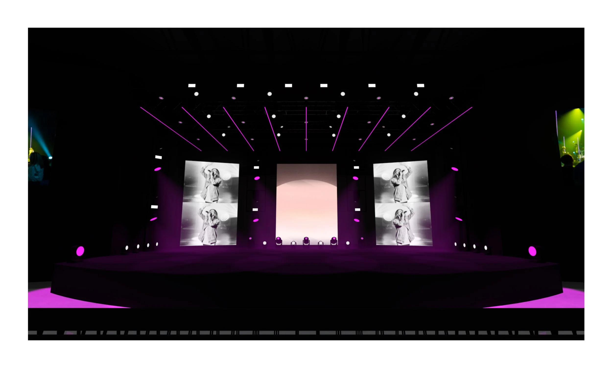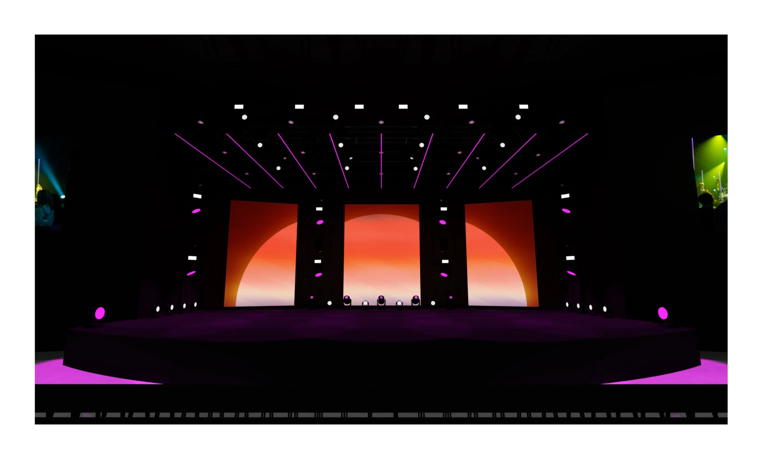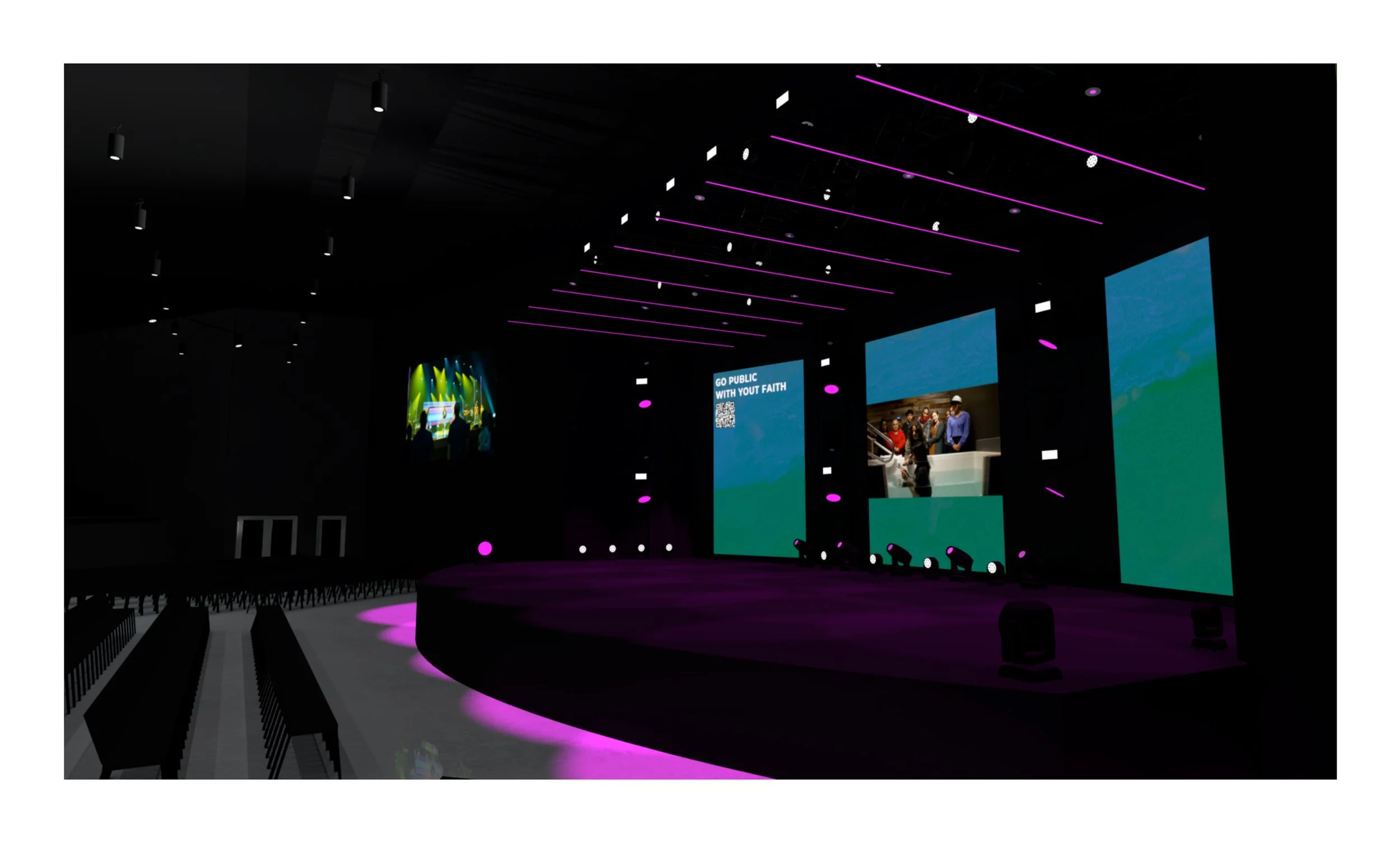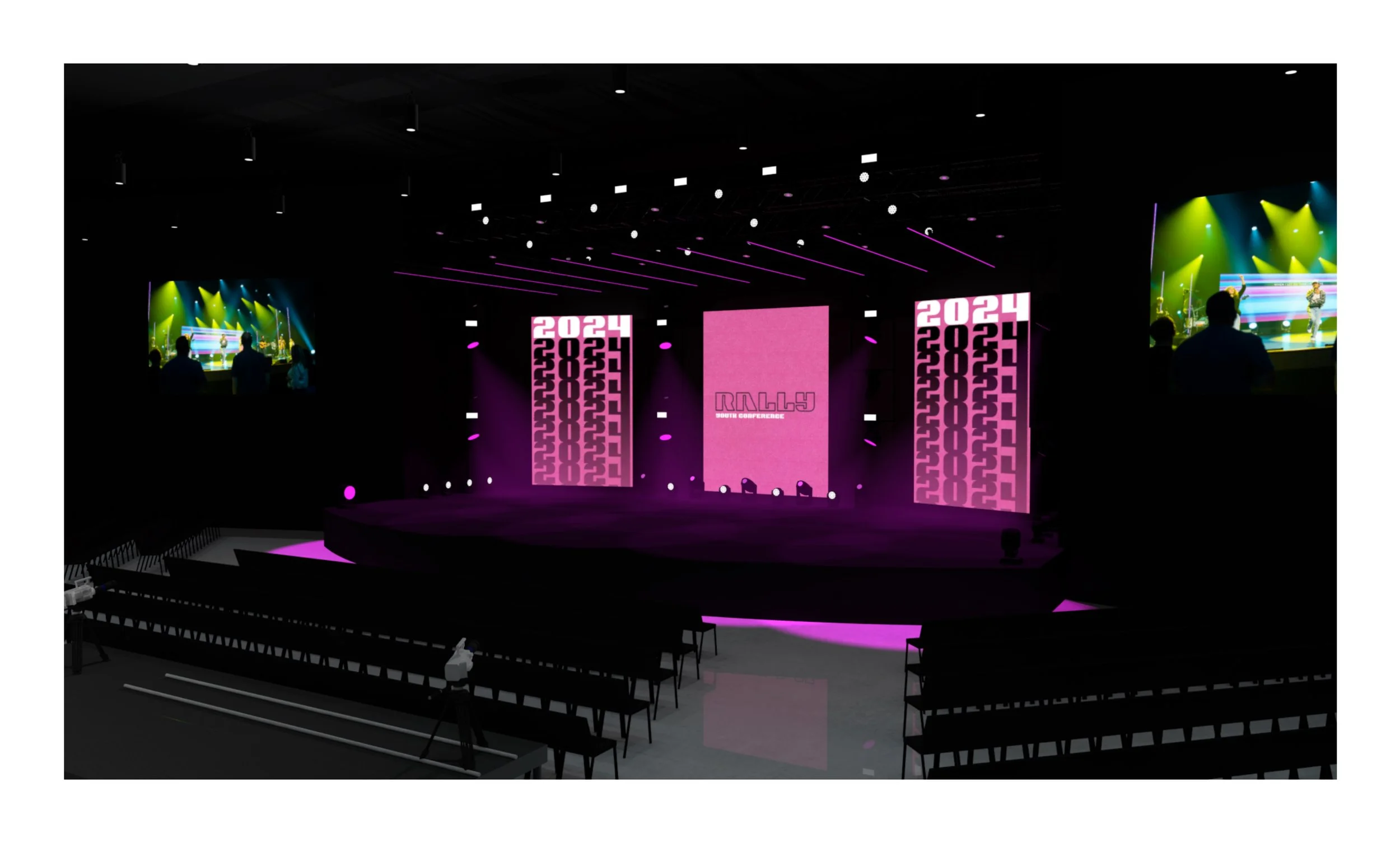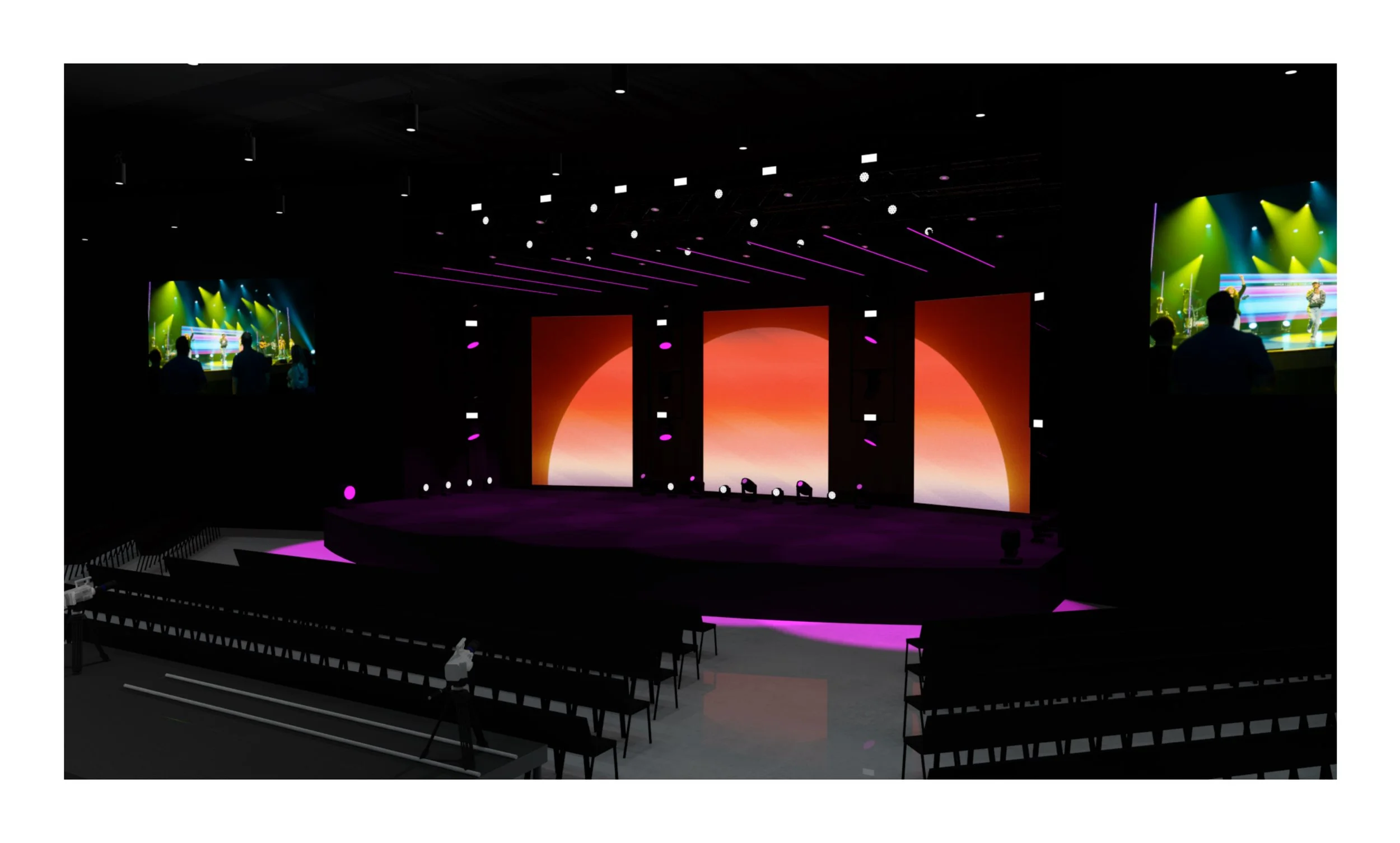 Worship could utilize screens as we normally would with stock CG, custom CG content, or at times, custom IMAG on the two angled screens.