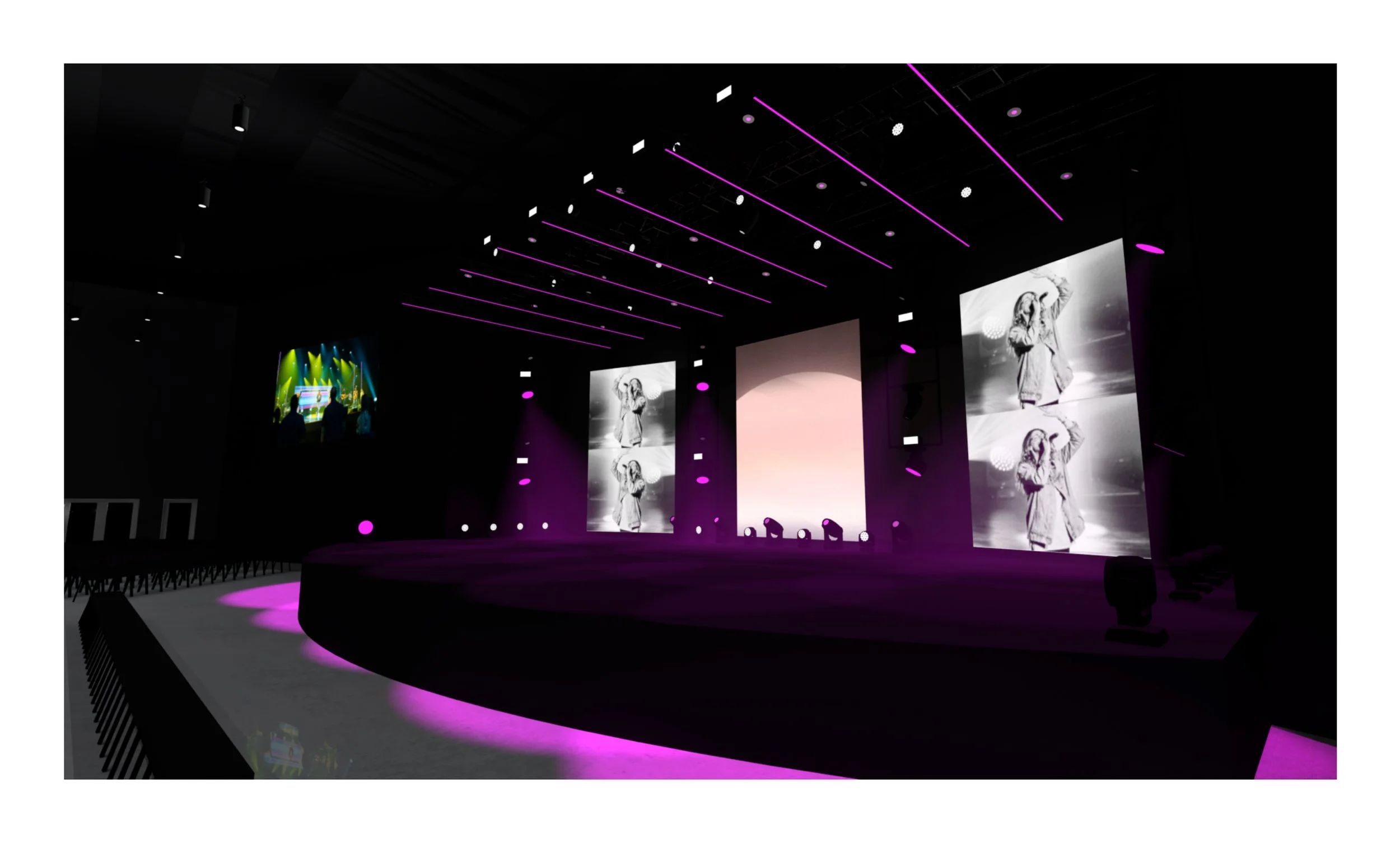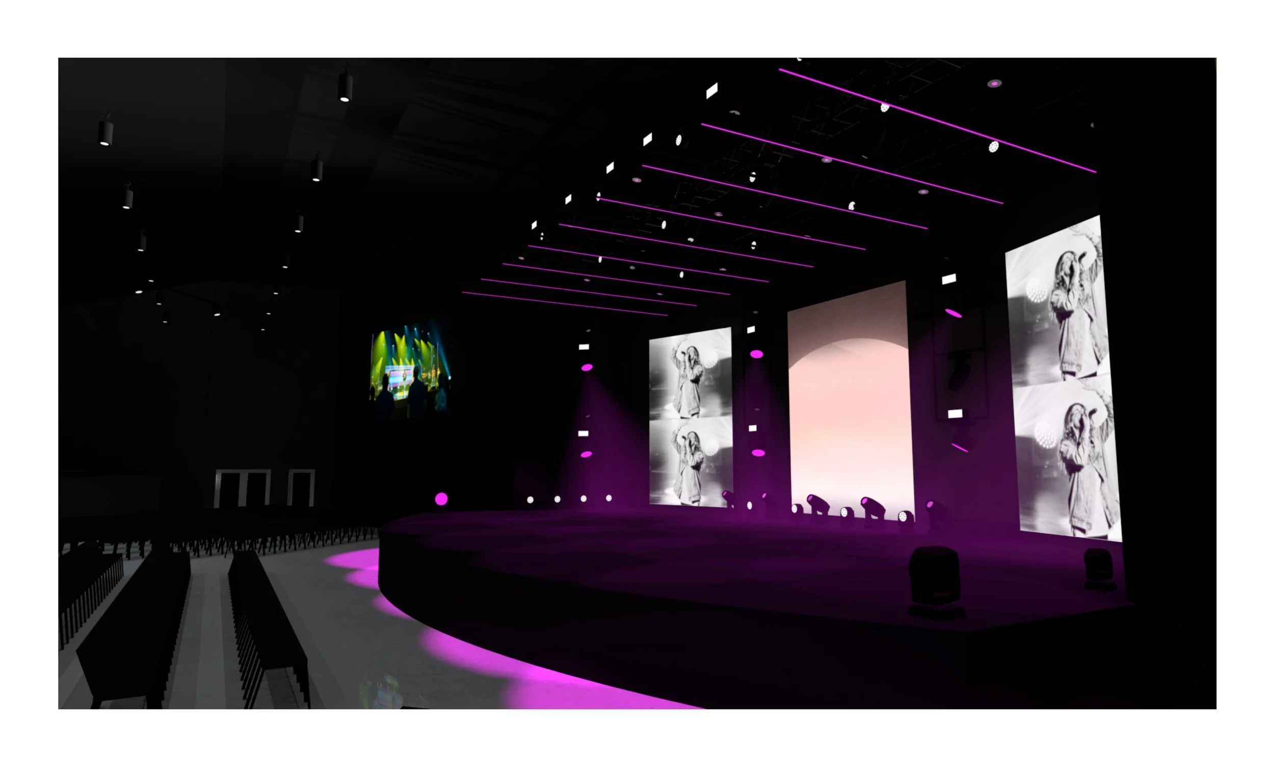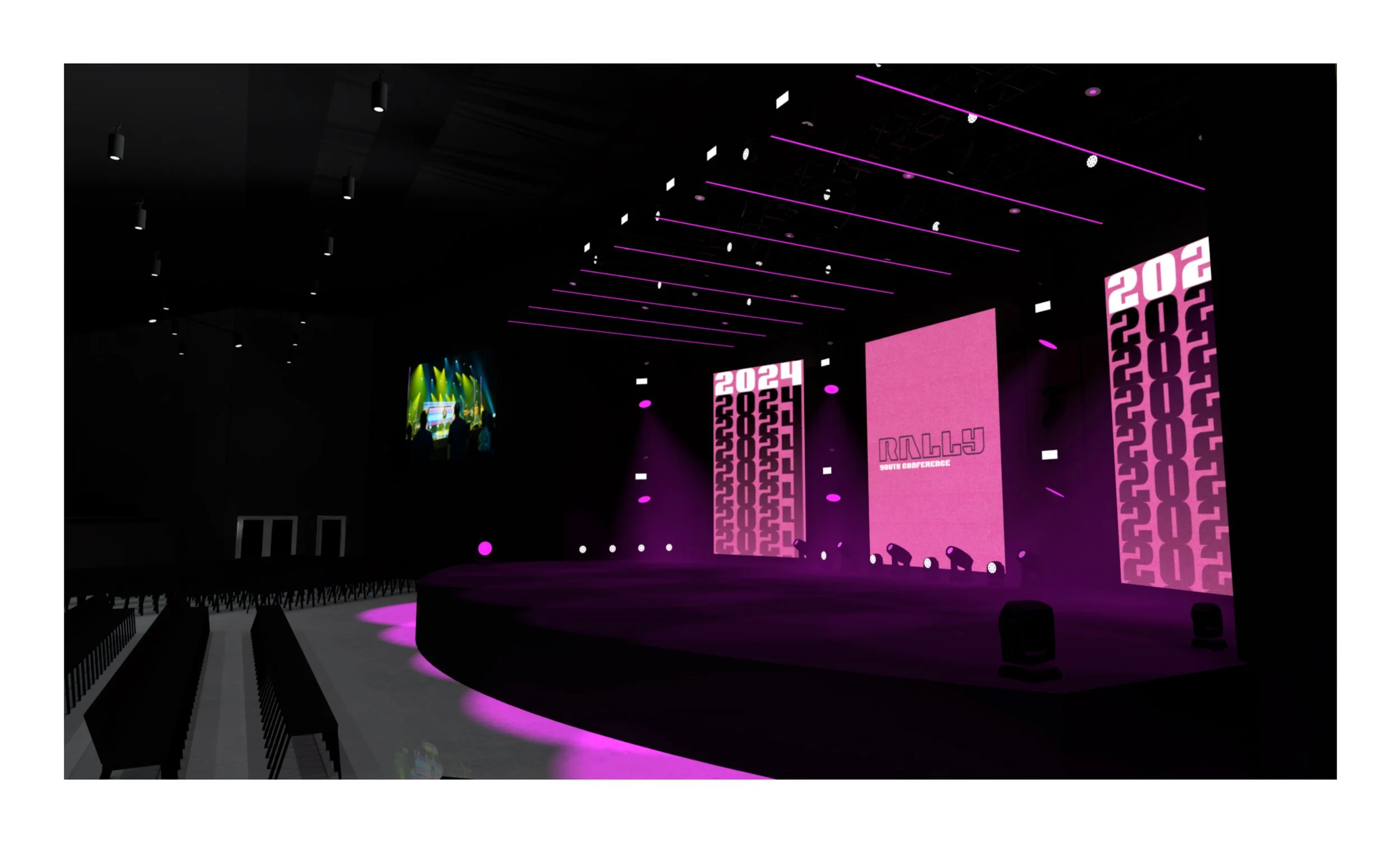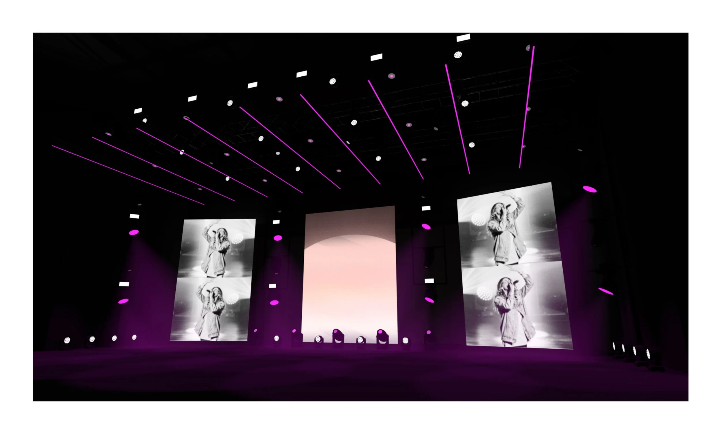 Worship could utilize screens as we normally would with stock CG, custom CG content, or at times, custom IMAG on the two angled screens.