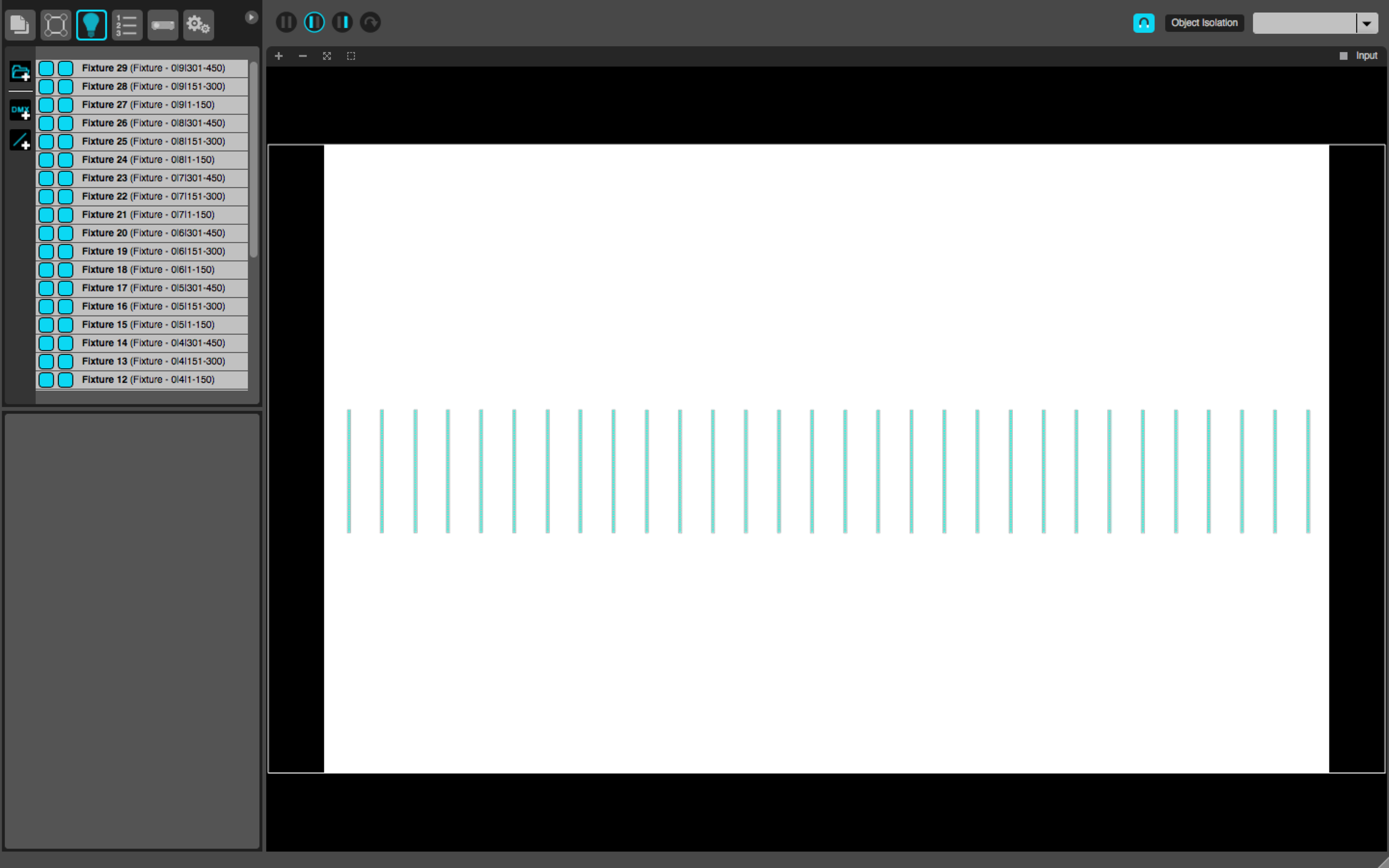 Once ready to start adding fixtures to the light plot, click on the lightbulb to open up the fixture menu.