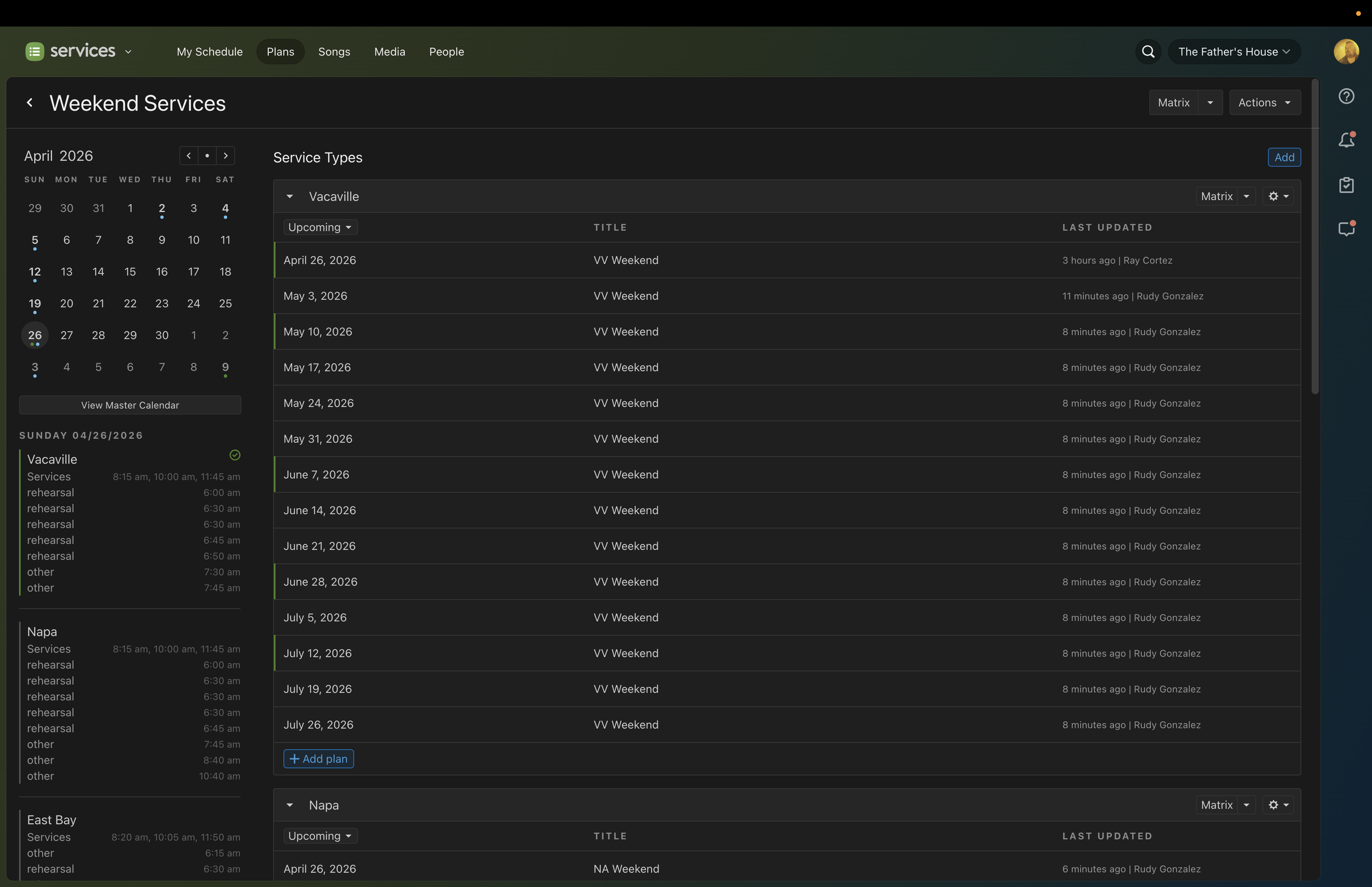 If we DON’T label plans in PCO, then every setlist will be labeled as “Service + Date”, with no dilineation between campus or service type (i.e. VV, RV, Weekend, Youth, Pursuit., etc)